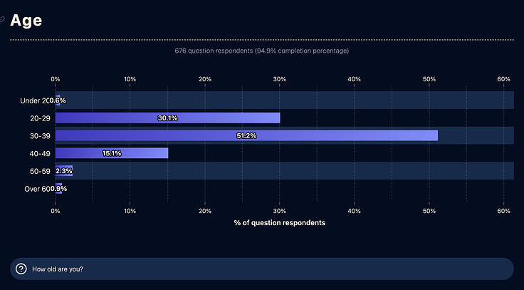 30代が最も多く、全体の半数以上を占めています。また81.9%が40代以下と大多数です。
